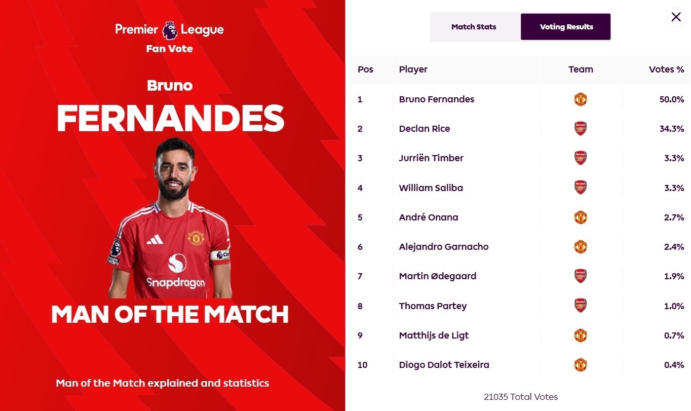 本场比赛,B费打入一个狂放球天下波体育录像/图片,为曼联首开纪录,赛后他得到50%的票数,被评为全场最好。